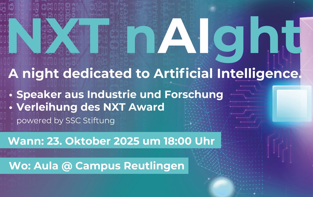 Was? : Bei der NXT nAIght werden spannende Speaker aus Industrie und Forschung darüber sprechen, wie KI derzeit in der Praxis eingesetzt wird, wie sie bestehende Prozesse verändert und welche Hürden sie mit sich bringt. Außerdem findet im Rahmen der NXT nAIght erstmals die Verleihung des NXT Awards powered by SSC Stiftung statt.